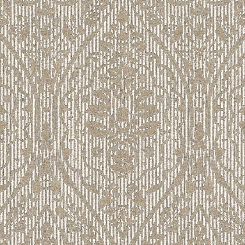 Papel pintado motivos damasco beige efecto textil, sofisticado y neutro con elegancia clásica. Architects Paper Tessuto II, papel de pared calidad tejido no tejido lavable. Medidas: 53 cm x 10 metros