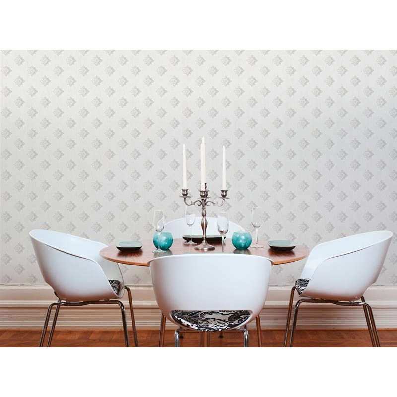 Papel pintado clásico actual contemporáneo blanco y gris, combina tradición y modernidad en equilibrio. Architects Paper Tessuto II, papel de pared calidad tejido no tejido lavable. Medidas: 53 cm x 10 metros