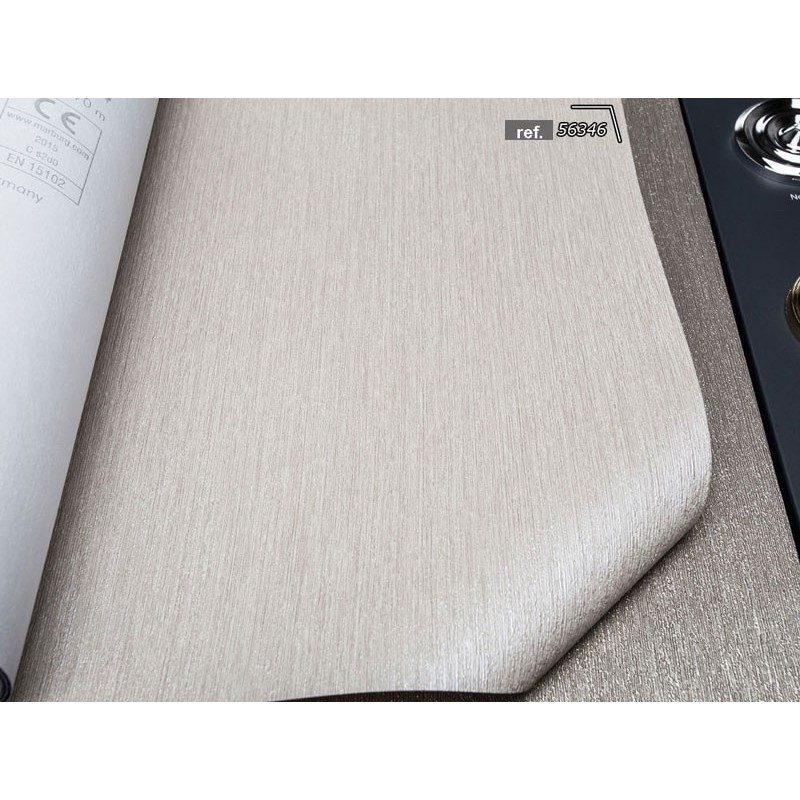Papel pintado gris perla efecto estuco rayado de Marburg, colección Luigi Colani, calidad tejido no tejido lavable. Medidas: 70 cm x 10 metros