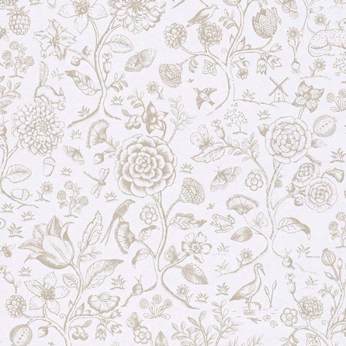 Papel pintado con flores vintage y animales, una composición única para aportar calidez y encanto a las paredes. Pip Studio de Eijffinger, papel de pared calidad tejido no tejido lavable. Medidas: 52 cm x 10 metros