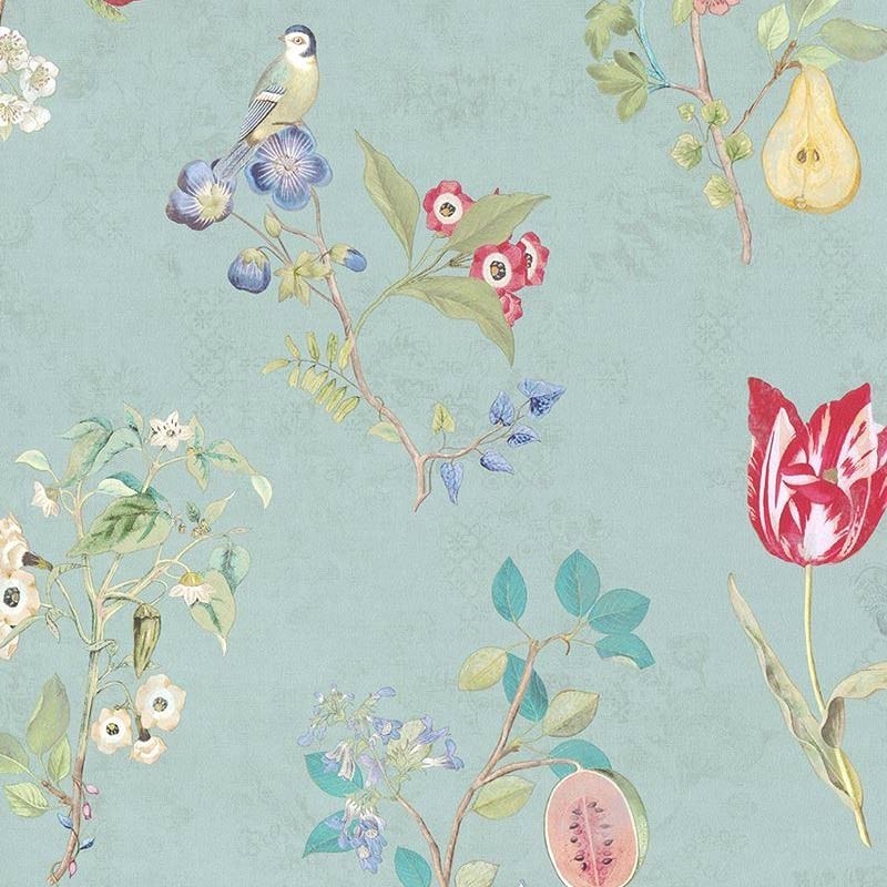 Papel pintado con flores y frutas, una propuesta versátil y colorida que transmite energía en la decoración. Pip Studio de Eijffinger, papel de pared calidad tejido no tejido lavable. Medidas: 52 cm x 10 metros