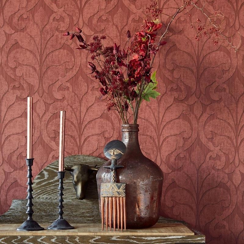 Papel pintado damasco arena de Eijffinger, colección Siroc. Medidas: 52 cm x 10 m. Papel de pared tejido no tejido y lavable.