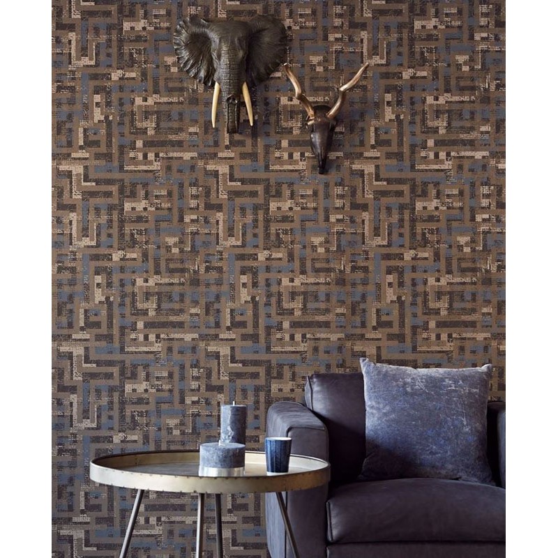 Papel pintado étnico efecto metalizado de Eijffinger, colección Siroc. Medidas: 52 cm x 10 m. Papel de pared tejido no tejido y lavable.