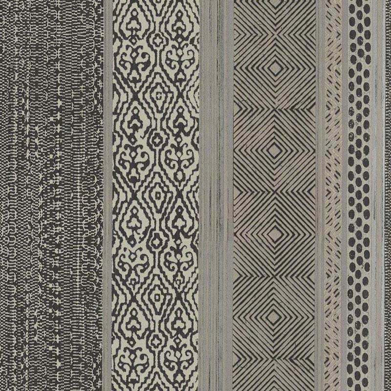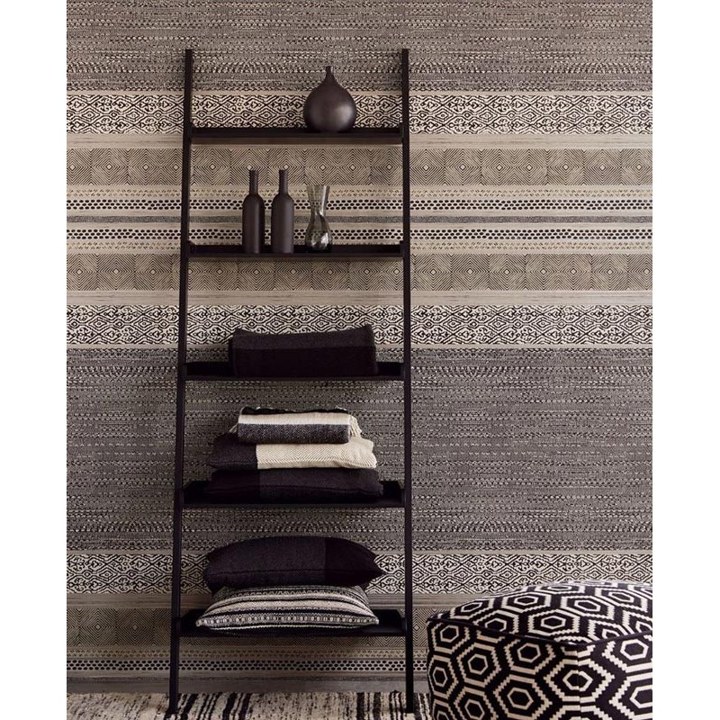 Papier peint africain imitation tapis artisanal 376023 d’Eijffinger, collection Siroc. Dimensions du rouleau : 68,5 cm x 10 m. Revêtement mural intissé et lavable