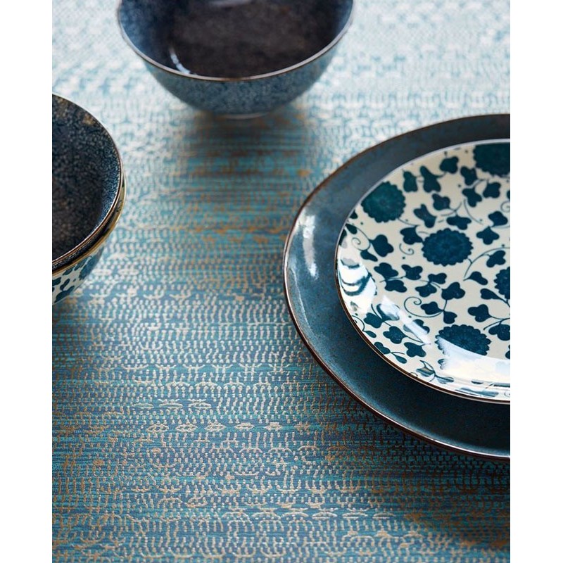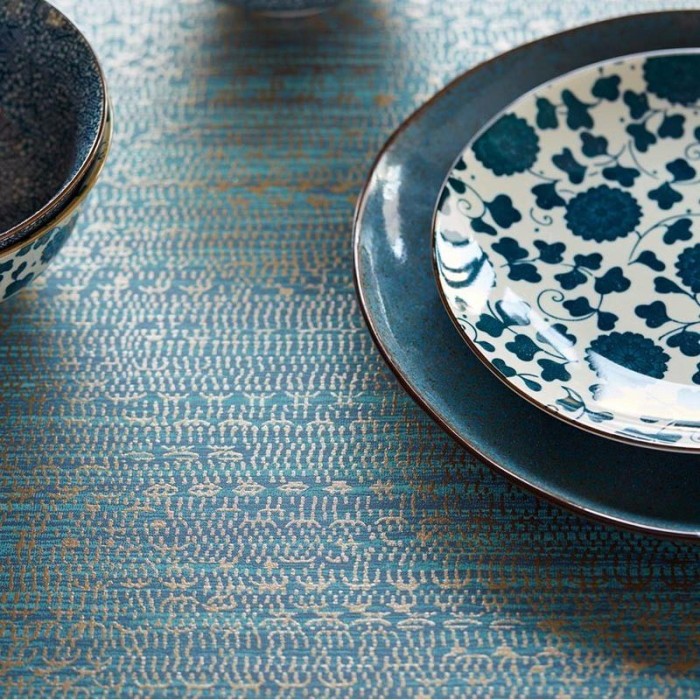 Papel pintado étnico africano azul de Eijffinger, colección Siroc. Medidas: 52 cm x 10 m. Papel de pared tejido no tejido y lavable.