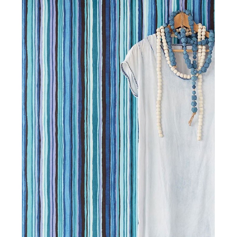 Papel pintado rayas azules, verdes y violetas. Dale vida a tus paredes en cualquier estancia de tu hogar. Combina con estilos modernos y clásicos.