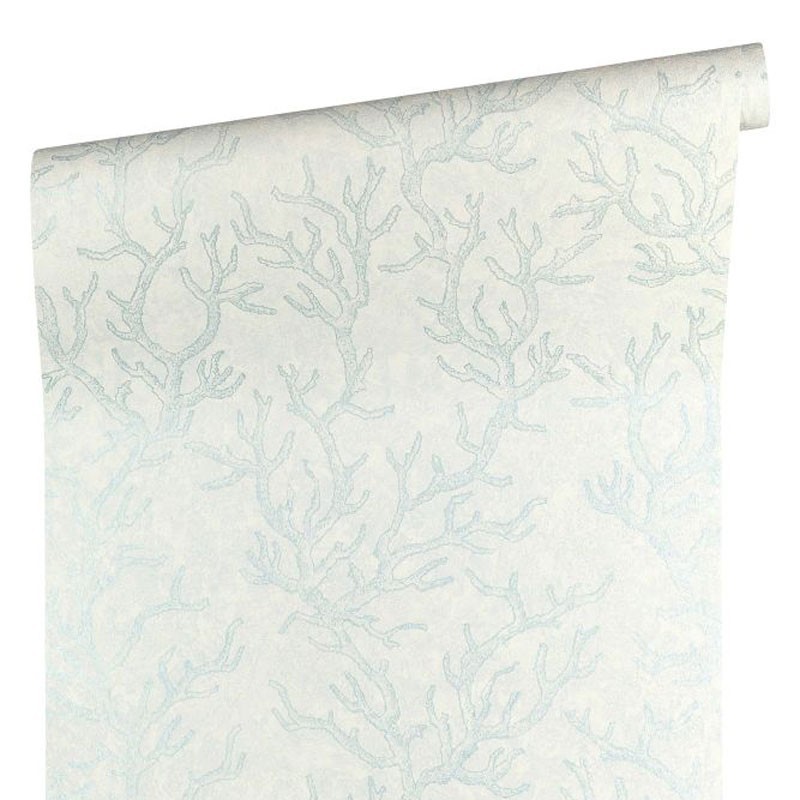 Papel pintado corales marinos blanco y beige Versace de gama alta, calidad vinílico y lavable. Medidas: 70 cm x 10 metros
