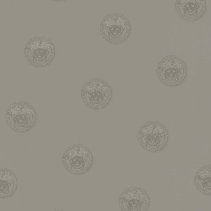 Papel pintado Versace blanco con logo gris Versace de gama alta, calidad vinílico y lavable. Medidas: 70 cm x 10 metros