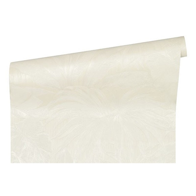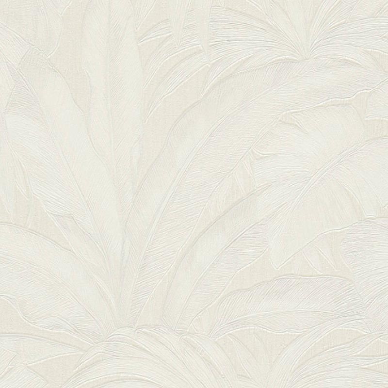 Papel pintado tropical hojas blancas de palmera con brillo Versace de gama alta, calidad vinílico y lavable. Medidas: 70 cm x 10 metros