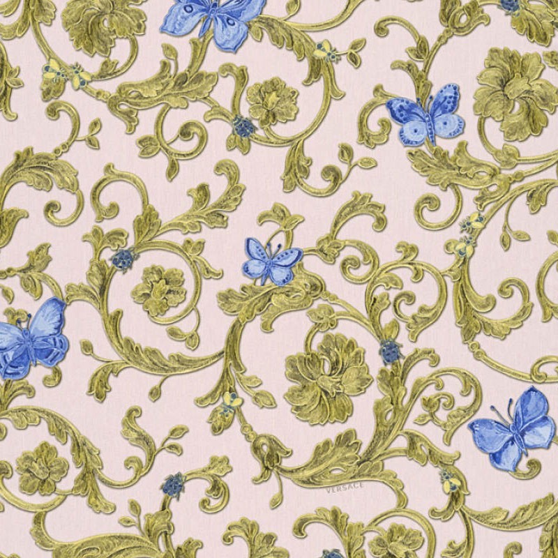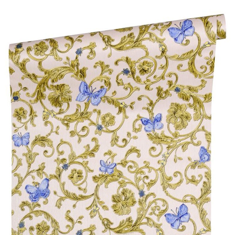 Papel pintado ornamental floral con mariposas Versace de gama alta, calidad vinílico y lavable. Medidas: 70 cm x 10 metros