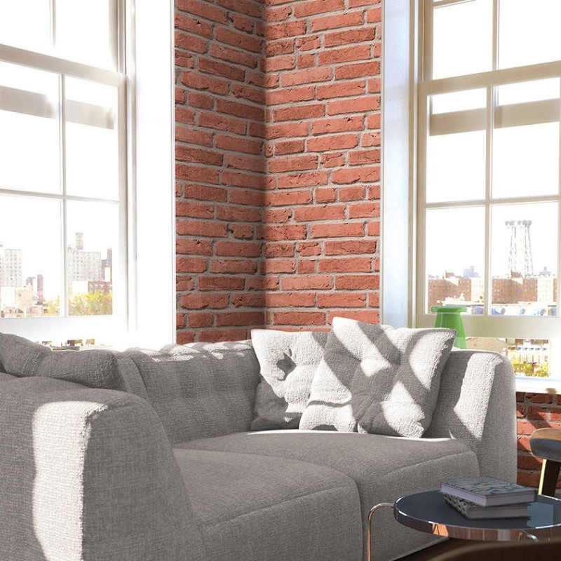 Efecto natural en papel pintado ladrillo rojo caravista, ideal para transformar cualquier espacio con estilo. Papeldecor 217-000243.