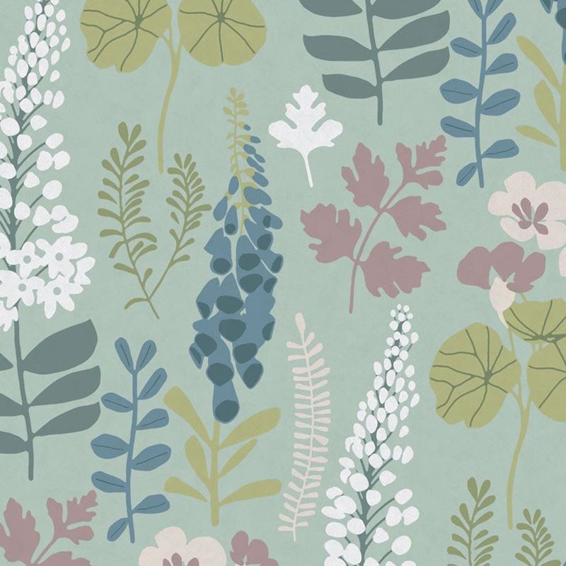 Papel pintado escandinavo ramilletes flores nórdicas de Eijffinger, colección Vivid. Medidas: 52 cm x 10 m. Papel de pared tejido no tejido y lavable.