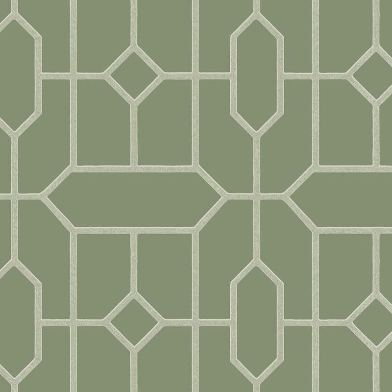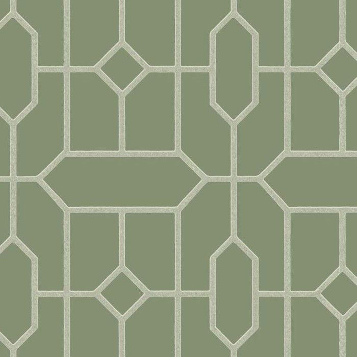Papel pintado moderno patrón ondulado verde de Casamance, colección Terra Rossa. Calidad vinílico lavable, medidas: 70 cm x 10 m.