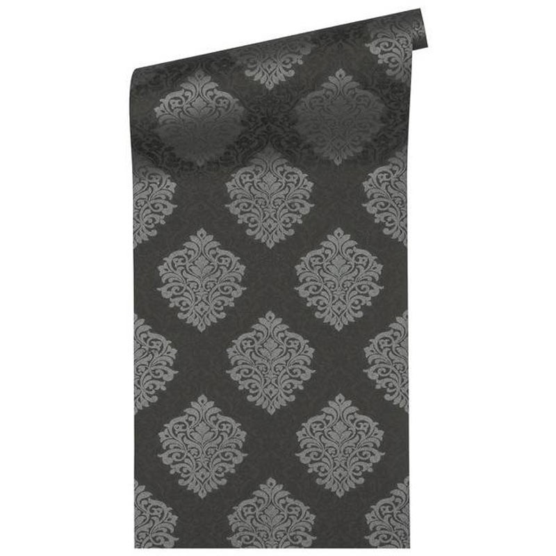 Papel pintado damasco gris metalizado, perfecto para salon elegante, sofisticado y lleno de luz. Architects Paper Alpha, papel de pared calidad tejido no tejido lavable. Medidas: 53 cm x 10 metros