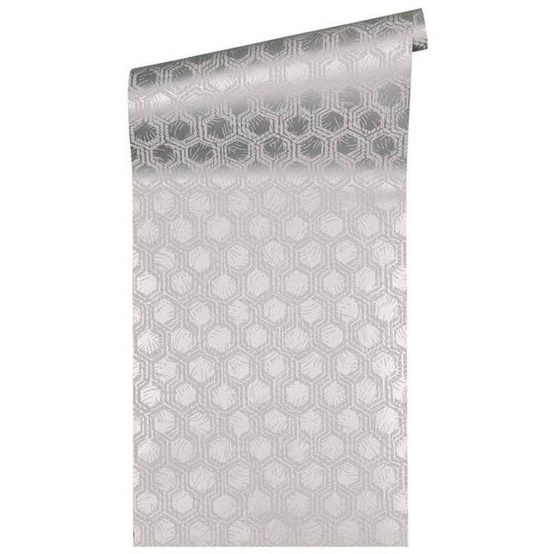 Papel pintado metalizado de diseño tonos beige grisaceo, elegancia sutil con reflejos modernos. Architects Paper Alpha, papel de pared calidad tejido no tejido lavable. Medidas: 53 cm x 10 metros