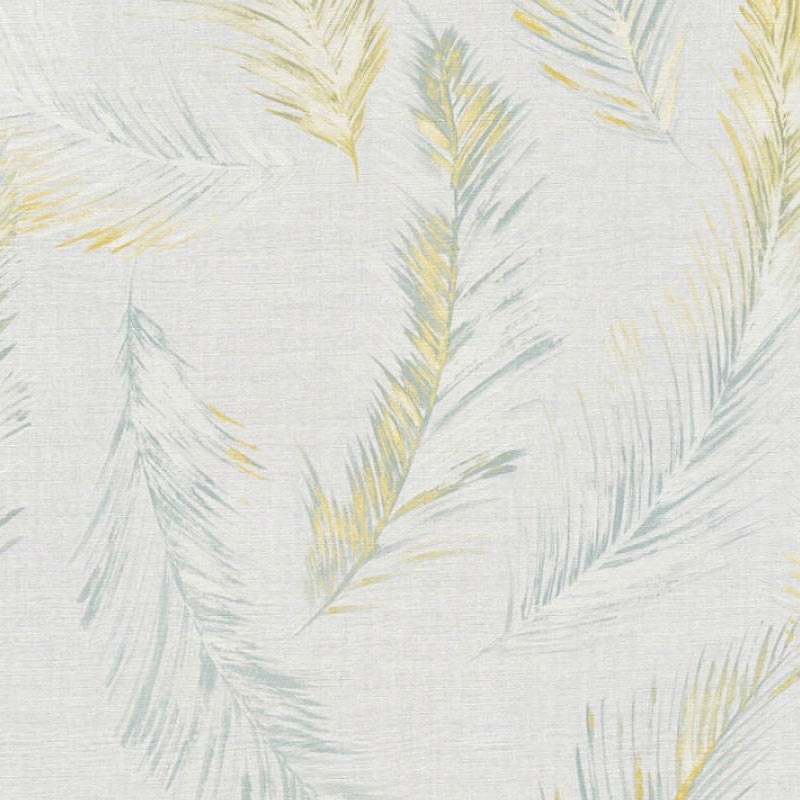 Papel pintado con hojas de palma en tonos gris y amarillo. Ideal para lograr aportar frescura y estilo tropical. Papeldecor 218-19042
