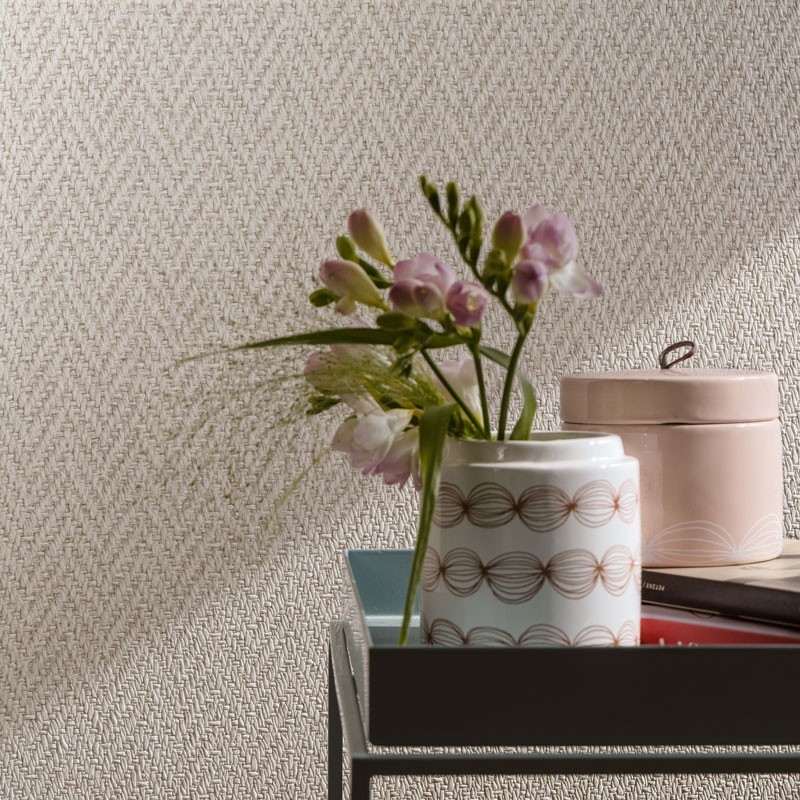 Papel pintado textil espiga blanco beige de Marburg, colección Loft, calidad tejido no tejido lavable. Medidas: 53 cm x 10 metros