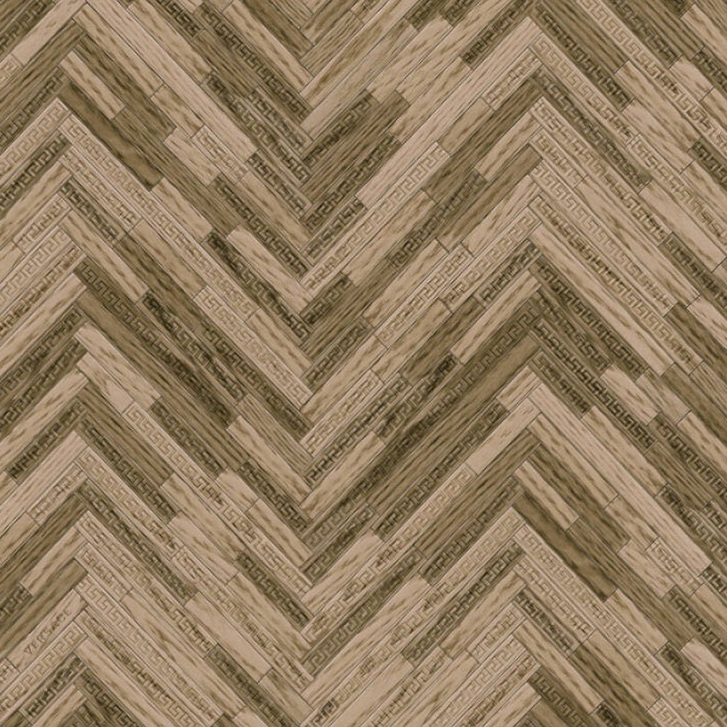 Papel pintado madera tallada en espiga marrón de Versace, alta gama calidad vinílico lavable. Medidas: 70 cm x 10 metros