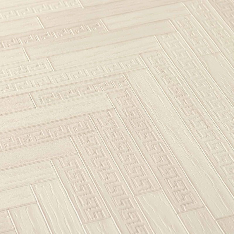 Papel pintado madera tallada en espiga gris brillante Versace de gama alta, calidad vinílico y lavable. Medidas: 70 cm x 10 metros