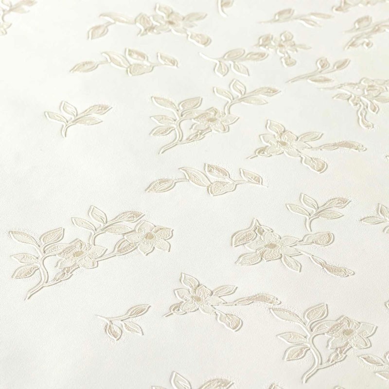 Papel pintado flores pequeñas blanco crema metalizado