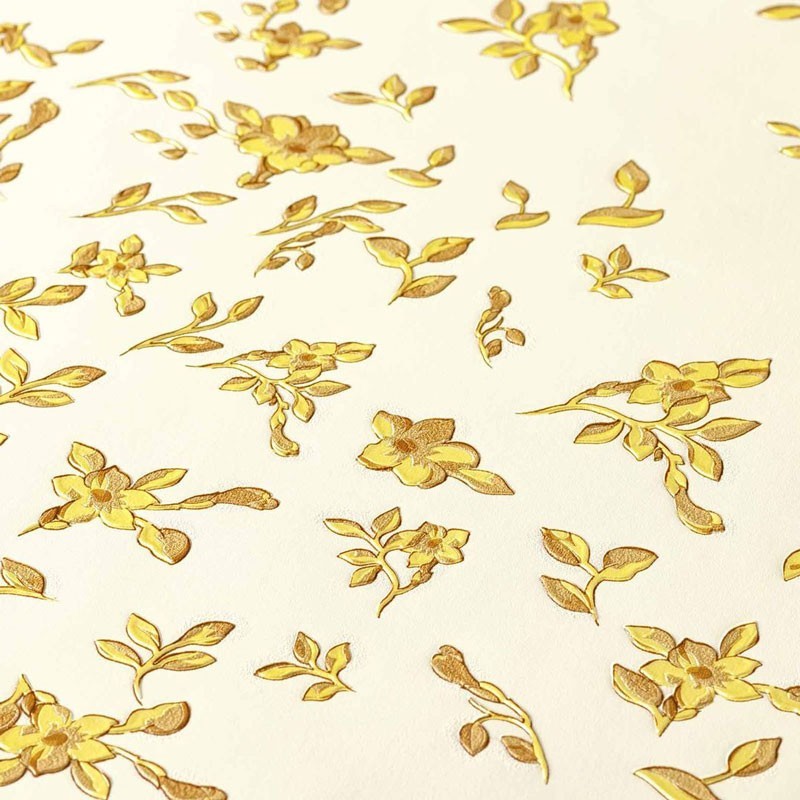 Papel pintado flores pequeñas blanco y dorado metalizado