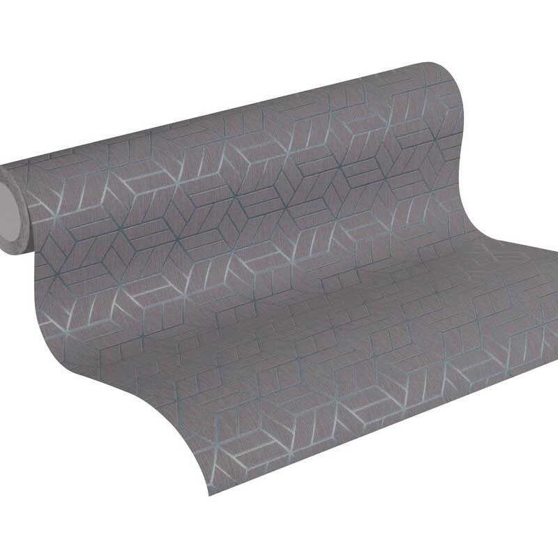 Papel Pintado geométrico metalizado textura gris plata. AS Creation - Metropolitan Stories 369204