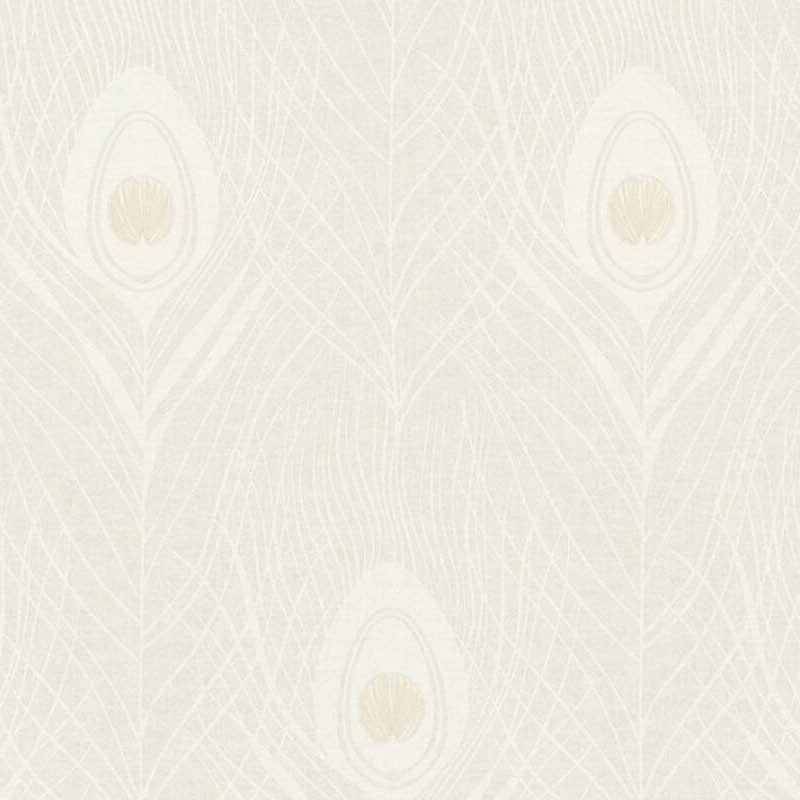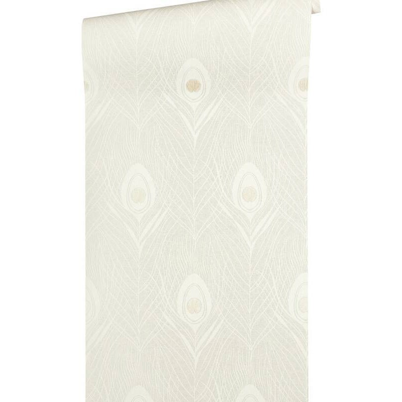 Papel pintado elegante plumas pavo real beige, discreto y refinado con matices sofisticados. Architects Paper Absolutely Chic, papel de pared calidad tejido no tejido lavable. Medidas: 53 cm x 10 metros