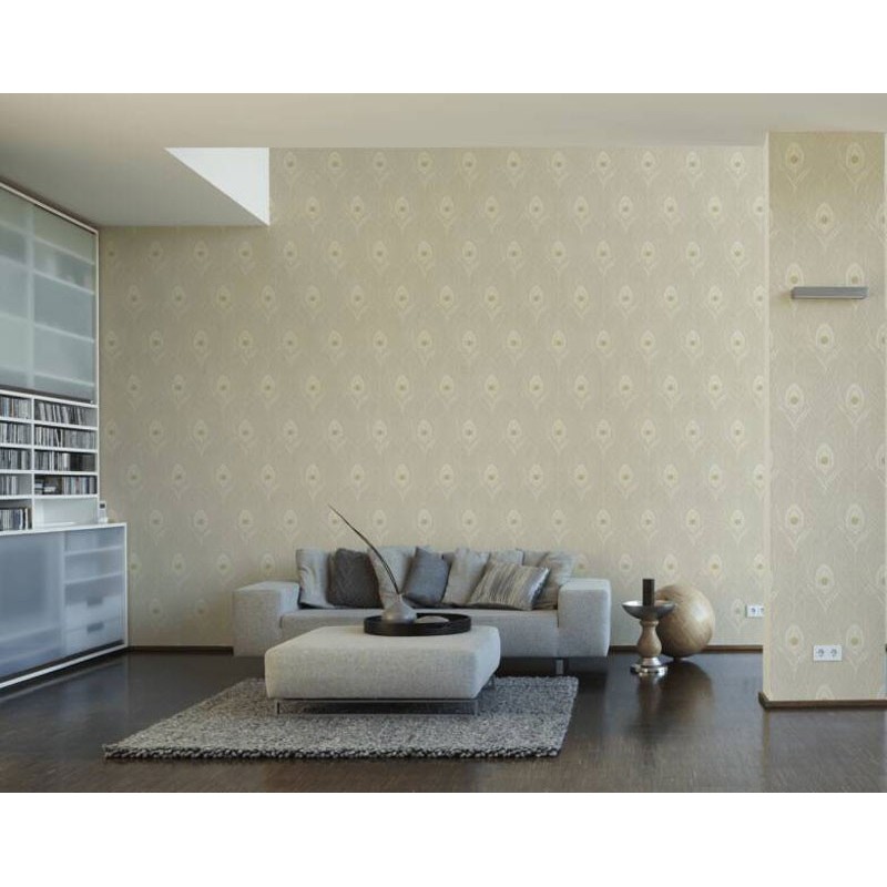 Papel pintado plumas de pavo real blanco brillo, delicado y elegante con inspiración natural. Architects Paper Absolutely Chic, papel de pared calidad tejido no tejido lavable. Medidas: 53 cm x 10 metros