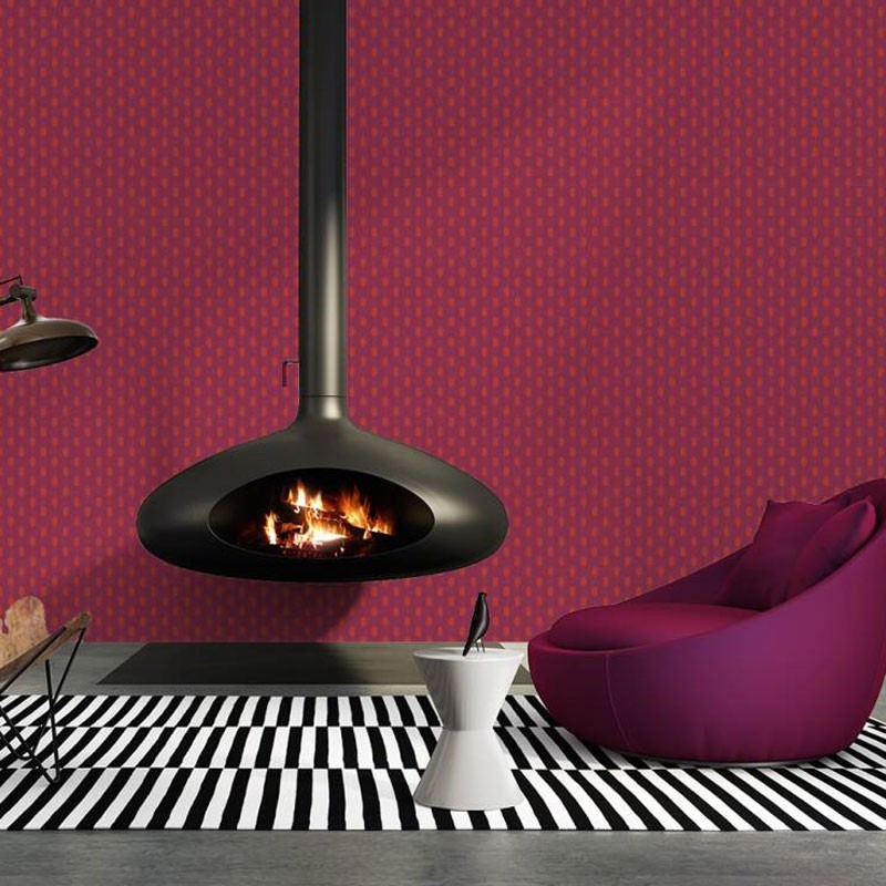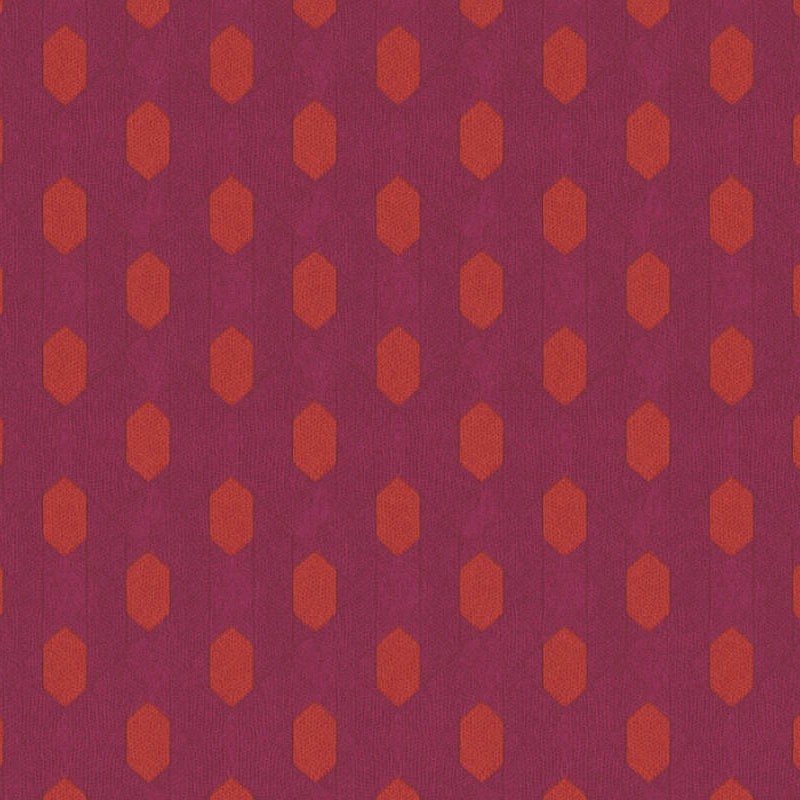 Papel pintado étnico moderno pequeños rombos violeta y naranja, vibrante y decorativo con un aire tribal. Architects Paper Absolutely Chic, papel de pared calidad tejido no tejido lavable. Medidas: 53 cm x 10 metros