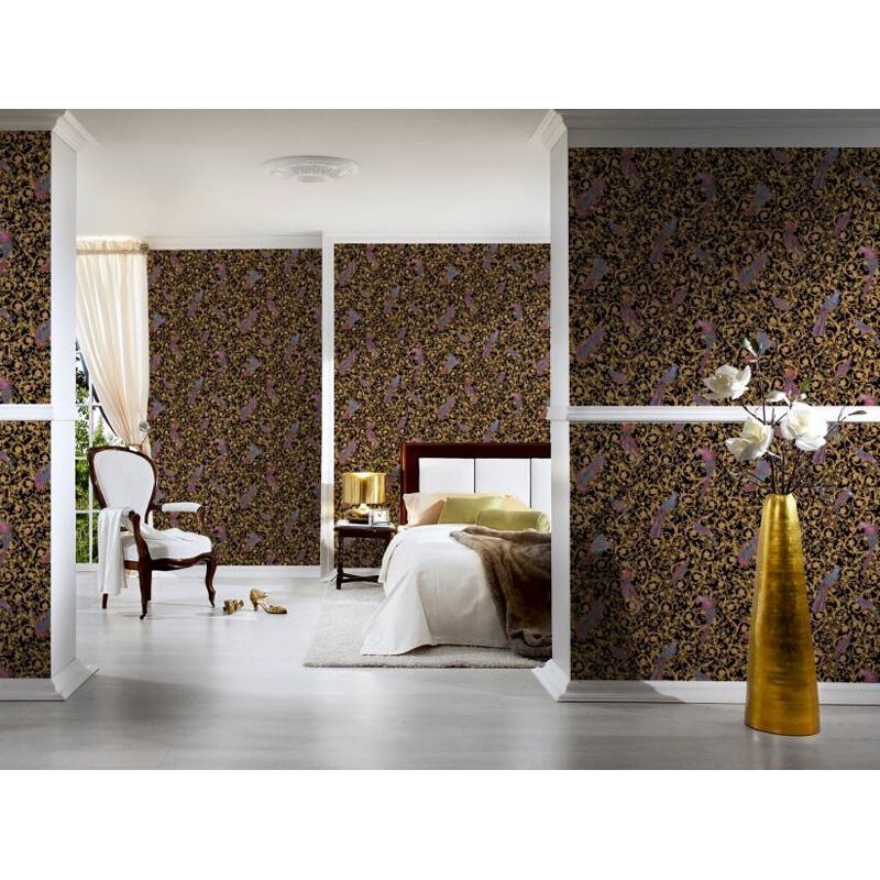 Papel pintado estilo retro moderno con franjas verticales amarillas. Vendido por rollo, medidas: 70 cm x 10 metros