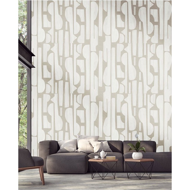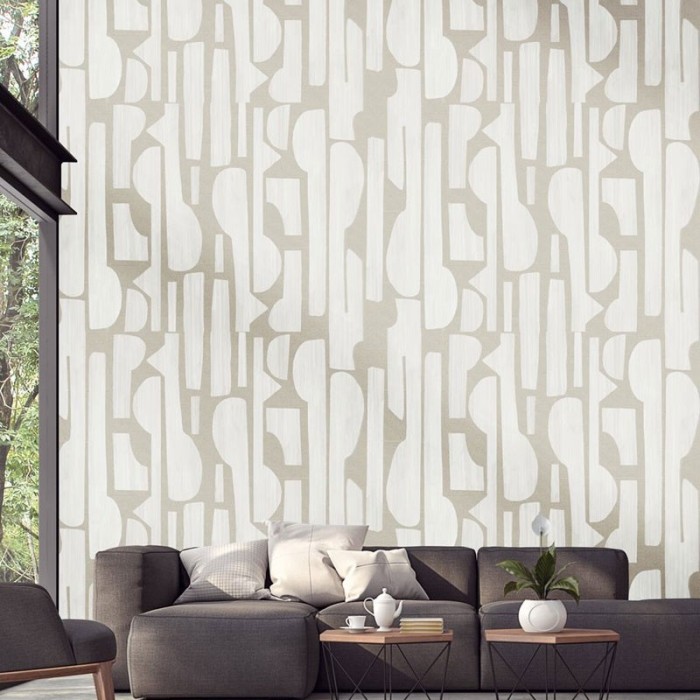 Mural de pared moderno figuras arte contemporáneo marrón taupe de Eijffinger, colección Bold. Medidas: 300 x 300 cm.