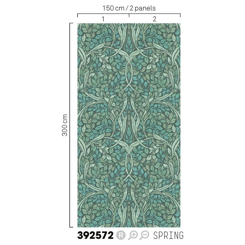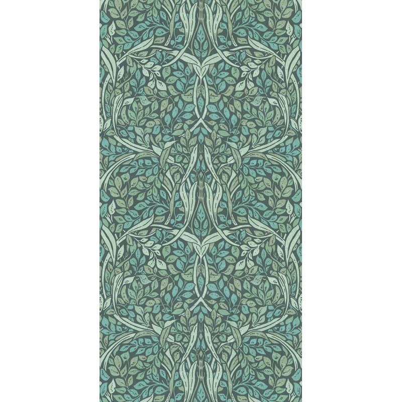 Mural de pared flores entrelazadas con patrones ornamentales de Eijffinger, colección Carmen. Medidas: 150 x 300 cm.