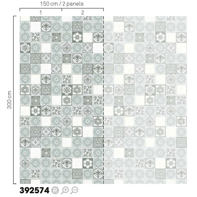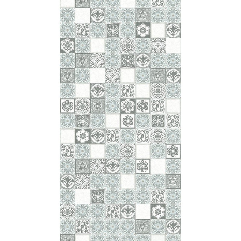 Mural de pared azulejos desgastados blanco y gris de Eijffinger, colección Carmen. Medidas: 150 x 300 cm.