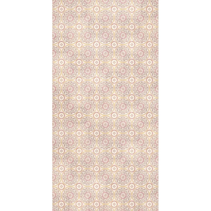 Mural de pared mosaico de azulejos desgastados beige y rosa de Eijffinger, colección Carmen. Medidas: 150 x 300 cm.