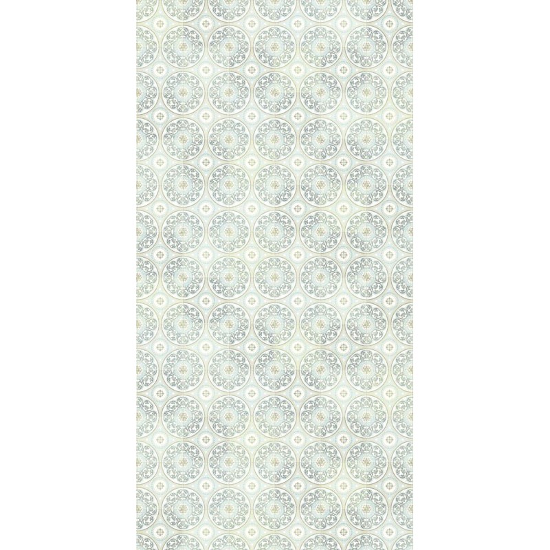 Mural de pared azulejos desgastados azul celeste tipo mosaico de Eijffinger, colección Carmen. Medidas: 150 x 300 cm.