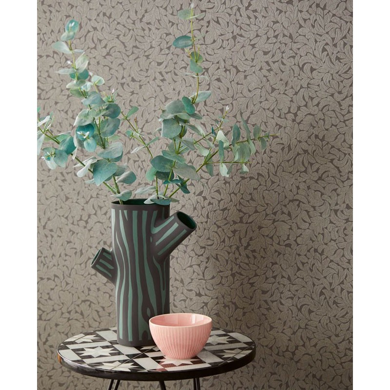 Papel pintado hojas relieve marrón taupe romántico