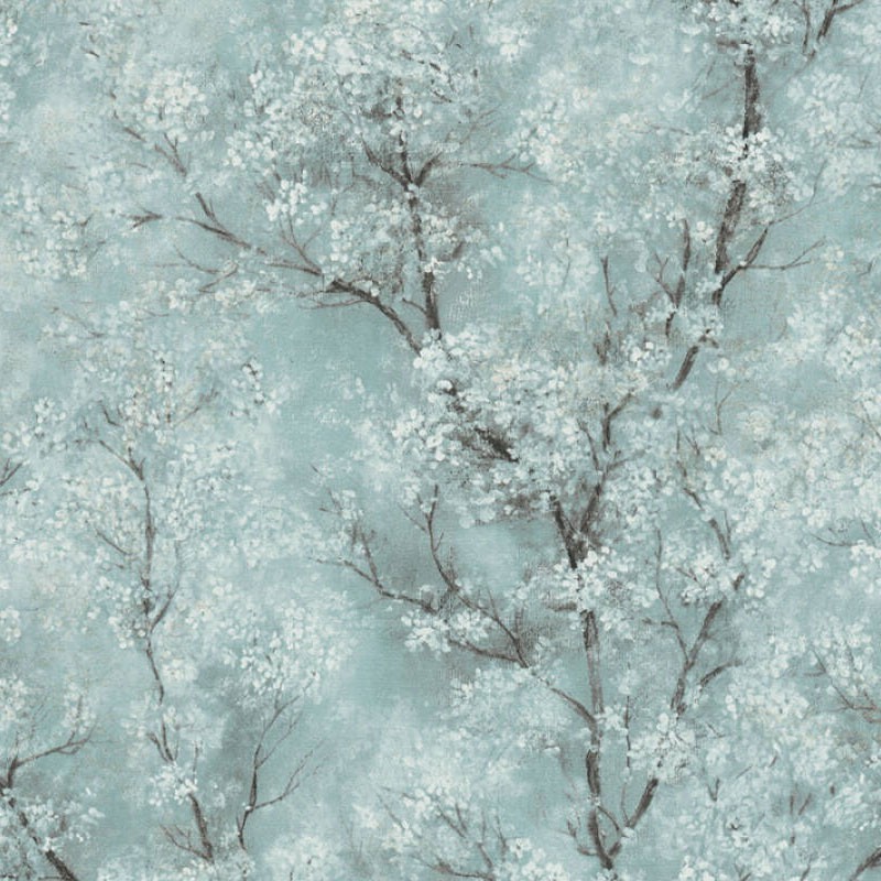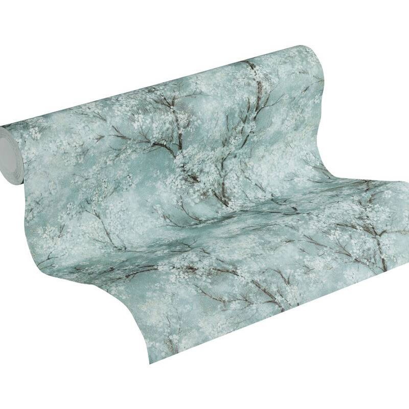 Papel pintado árboles en flor, estilo moderno verde pastel. AS Creation - New Walls 374203