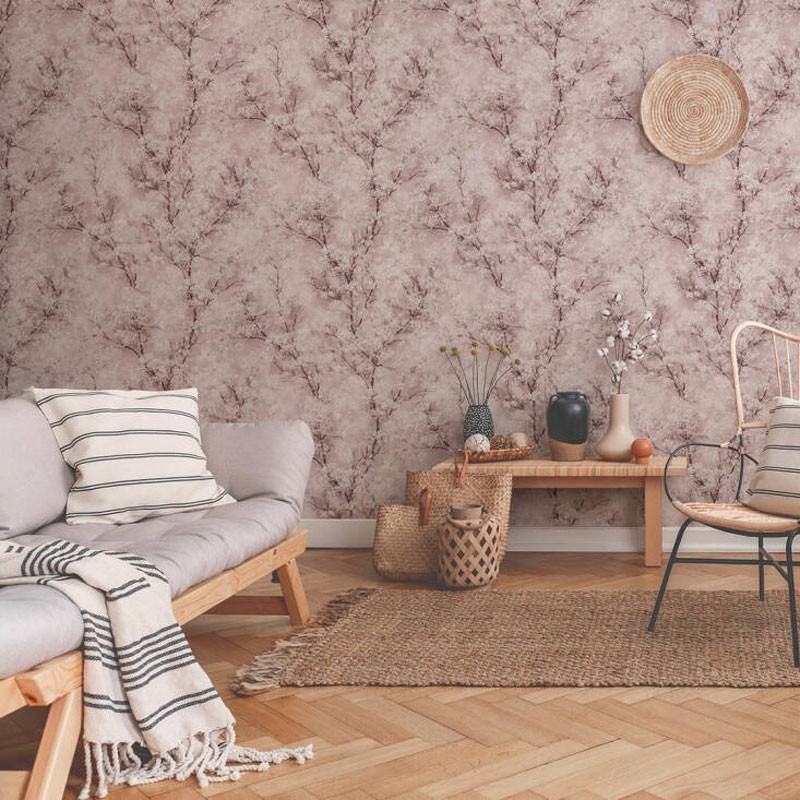 Papel pintado árboles en flor brillo, estilo moderno gris. AS Creation - New Walls 374201