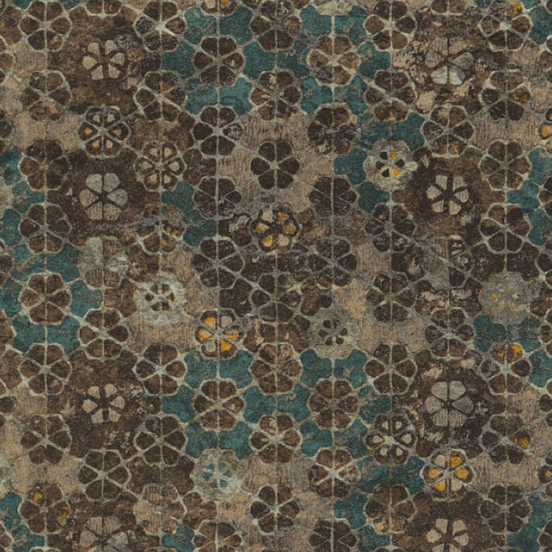 Papel pintado con mosaico de azulejos verde y marrón. Perfecto si buscas estilo colonial y paredes decorativas. Papeldecor 219-2211