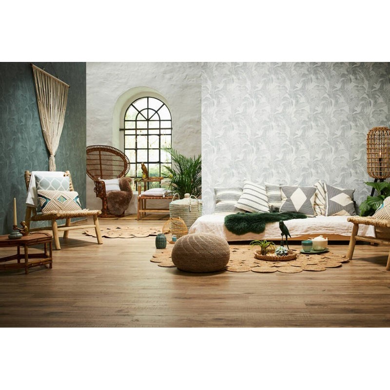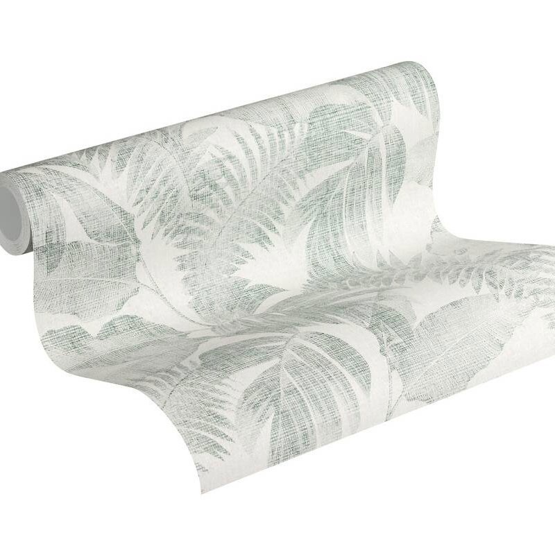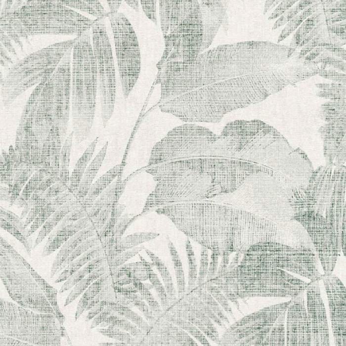 Papel pintado con flores selváticas en blanco crema y verde. Perfecto si buscas estilo botánico y natural. Papeldecor 219-2225