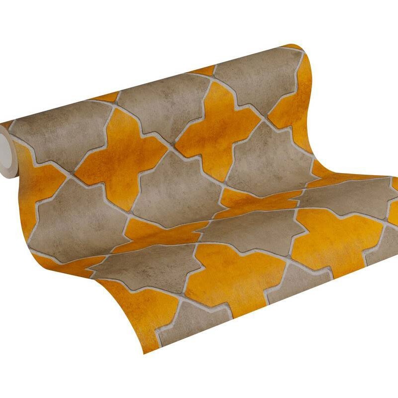Papel pintado con azulejo marroquí amarillo. Ideal para lograr estilo étnico y colores cálidos. Papeldecor 219-2243