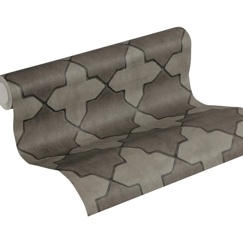 Papel pintado con azulejo marroquí gris. Perfecto si buscas estilo étnico y paredes sobrias. Papeldecor 219-2244