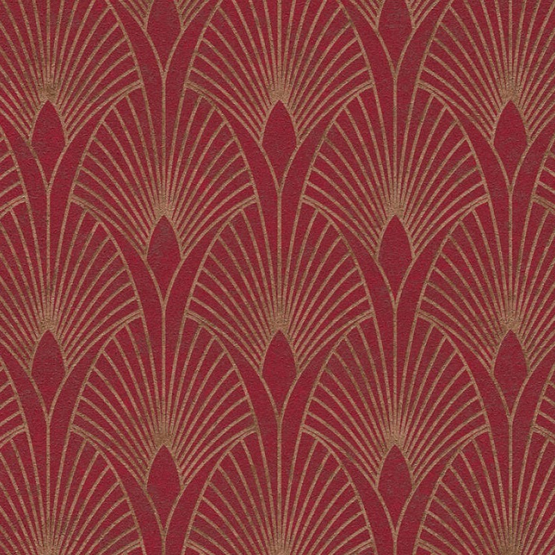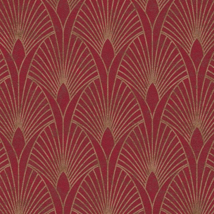 Papel pintado Art Deco moderno rojo y dorado metalizado. Ideal para lograr estilo vanguardista y paredes intensas. Papeldecor 219-2264