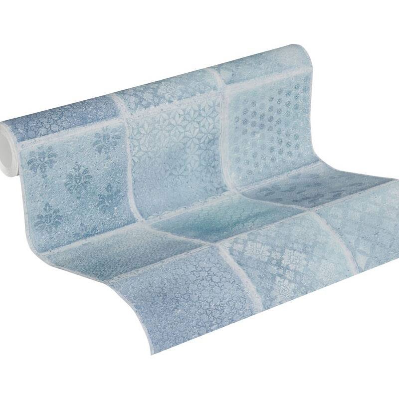 Papel pintado con azulejos tonos gris beige. Ideal para lograr estilo clásico y paredes discretas. Papeldecor 220-2269