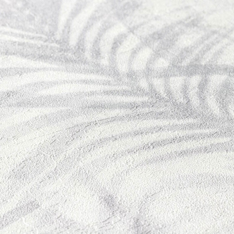 Papel pintado con plantas selváticas blanco y gris. Ideal para lograr estilo natural y paredes con profundidad. Papeldecor 220-2279