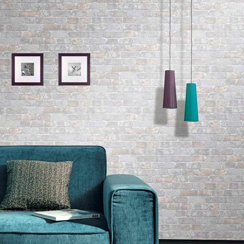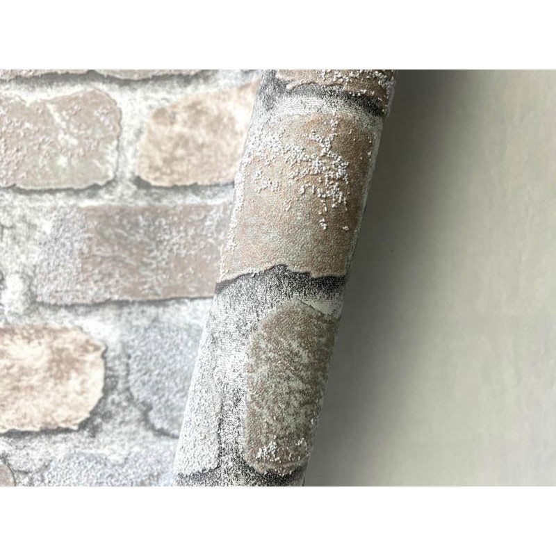 Este modelo de papel pintado ladrillo gris claro industrial, ideal para transformar cualquier espacio con estilo. Papeldecor 220-2554.