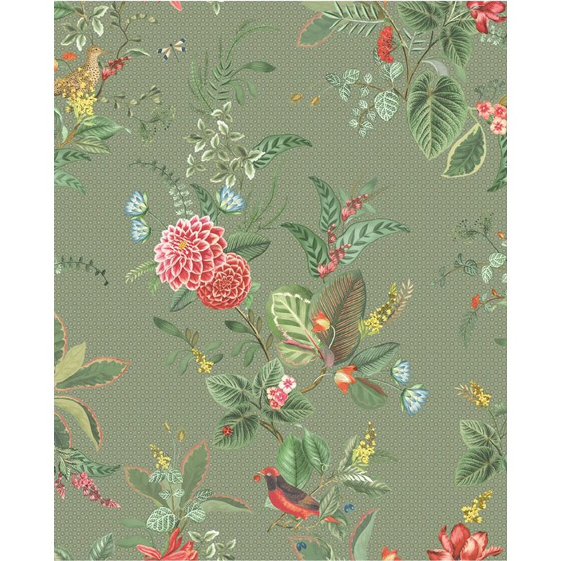 Papel pintado alegre con flores y pajarillos, un diseño fresco y encantador para decorar cualquier rincón. Pip Studio de Eijffinger, papel de pared calidad tejido no tejido lavable. Medidas: 52 cm x 10 metros