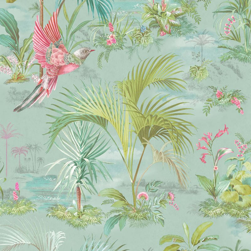 Papel pintado verde pastel con pájaros y flores románticas, un diseño suave y encantador para cualquier estancia. Pip Studio de Eijffinger, papel de pared calidad tejido no tejido lavable. Medidas: 52 cm x 10 metros