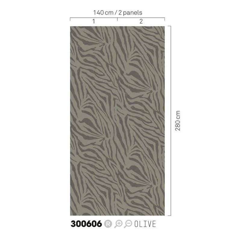 Mural pared étnico piel de cebra verde de Eijffinger, colección Skin. Medidas: 140 x 280 cm.