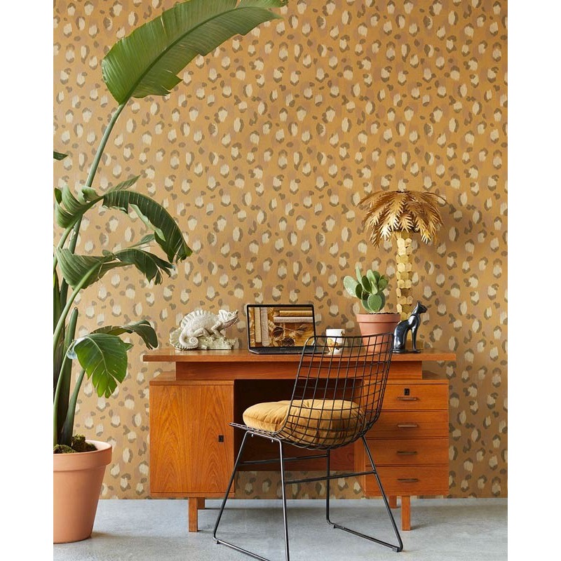 Papel pintado piel leopardo tapiz animal print de Eijffinger, colección Skin. Medidas: 52 cm x 10 m. Papel de pared tejido no tejido y lavable.